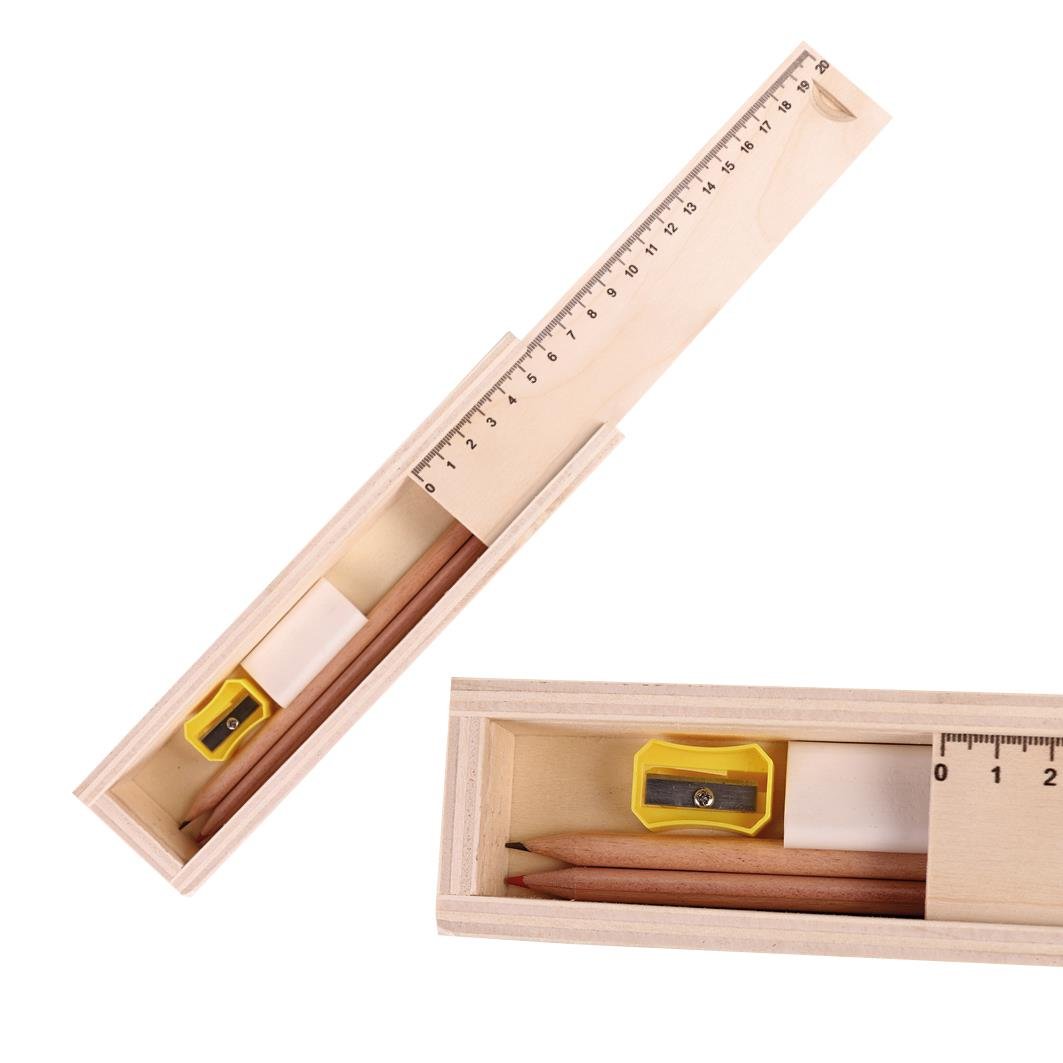 Cetvel, kurşun kalem, kırmızı kalem, silgi, kalemtraş