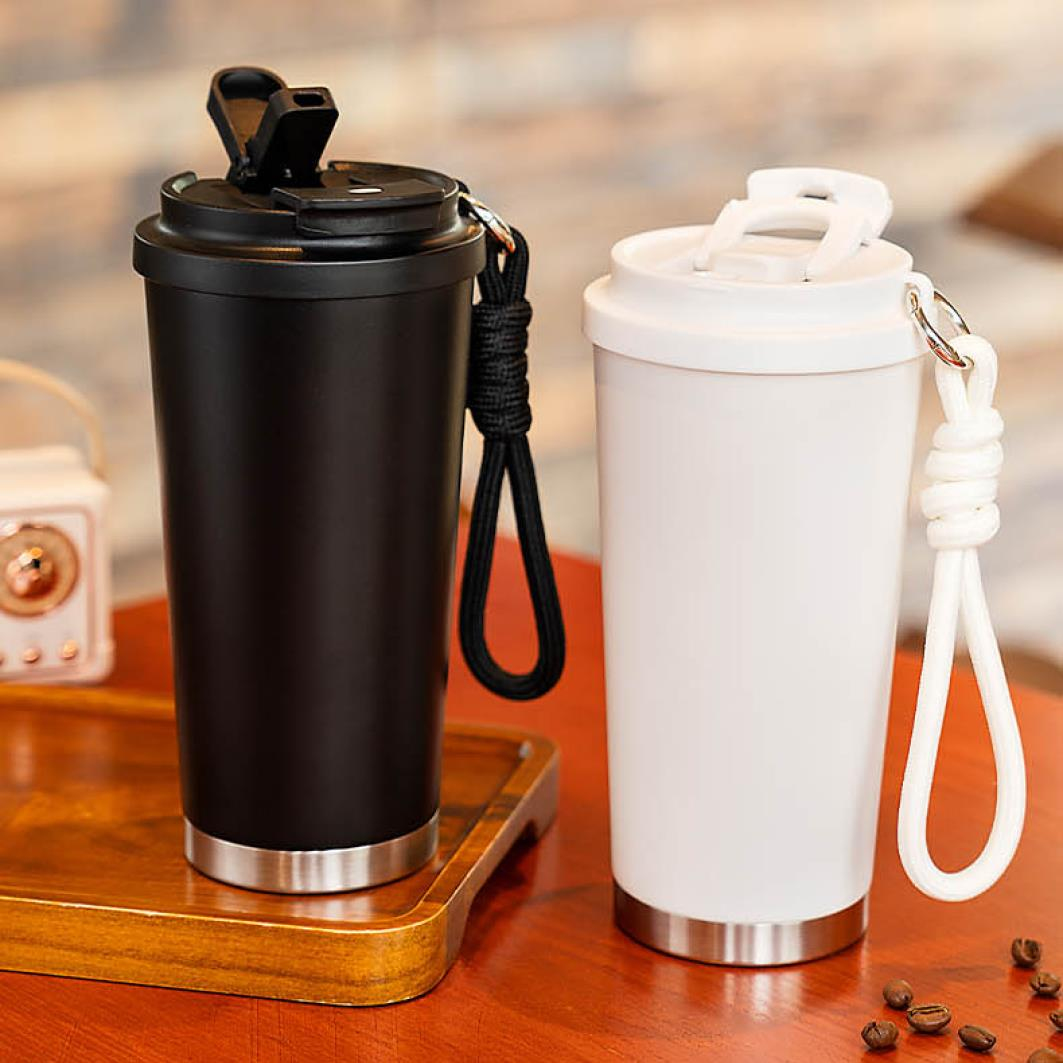 560 ml, çift duvarlı Mat gövde, BPA içermez Kolay taşınabilir dokuma ipli İç ve dış paslanmaz çelik Lazer baskı ve dijital renkli baskıya uygundur.